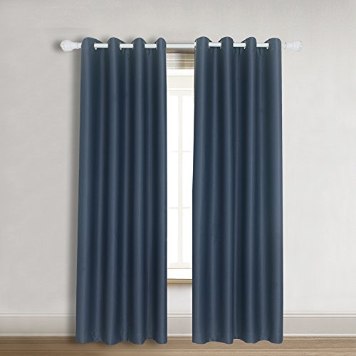 Blackout Curtains Amazlinen(TM) Toxic Free Solid Thermal Insulated Grommet Window Curtains Blackout Navy Blue,52