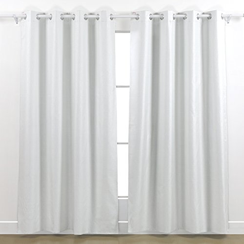 Pair of Two White Top Grommet Blackout Curtain Panels, Triple-Pass Foam Back Layer, Elegant and Contemporary Soho 63 Inches Blackout Panels
