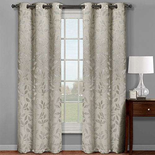 Pair of Two Top Grommet Claire Micro Suede Jacquard Blackout Weave Thermal Insulated Curtain Panels, Triple-Pass Yarn Back Layer, Elegant and Contemporary Claire Blackout Panels, Set of Two Beige 36