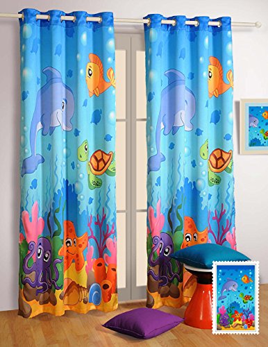 Water World Window Curtains - Set of 2 Curtain Panels for a Baby Nursery or Toddler or Kids Bedroom - 48