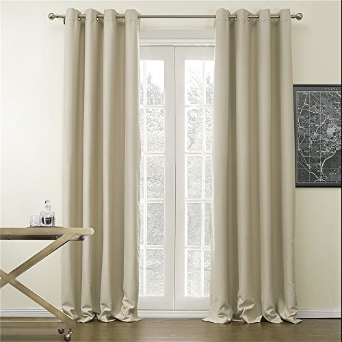 Deconovo Microfiber Grommet Top Thermal Insulated Blackout Curtain Back Layer With Thermal Coating, 52x63-Inch, 1 Pair, Ivory