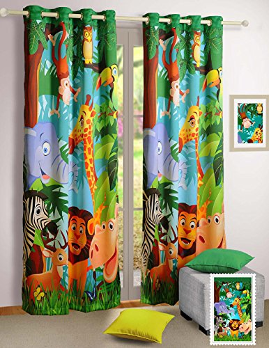 Jungle Animals Window Curtains - Set of 2 Curtain Panels for a Baby Nursery or Toddler or Kids Bedroom - 48