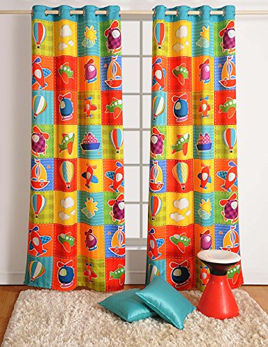 Aero Plane Print Door Curtains - Set of 2 Curtain Panels for a Baby Nursery or Toddler or Kids Bedroom - 48